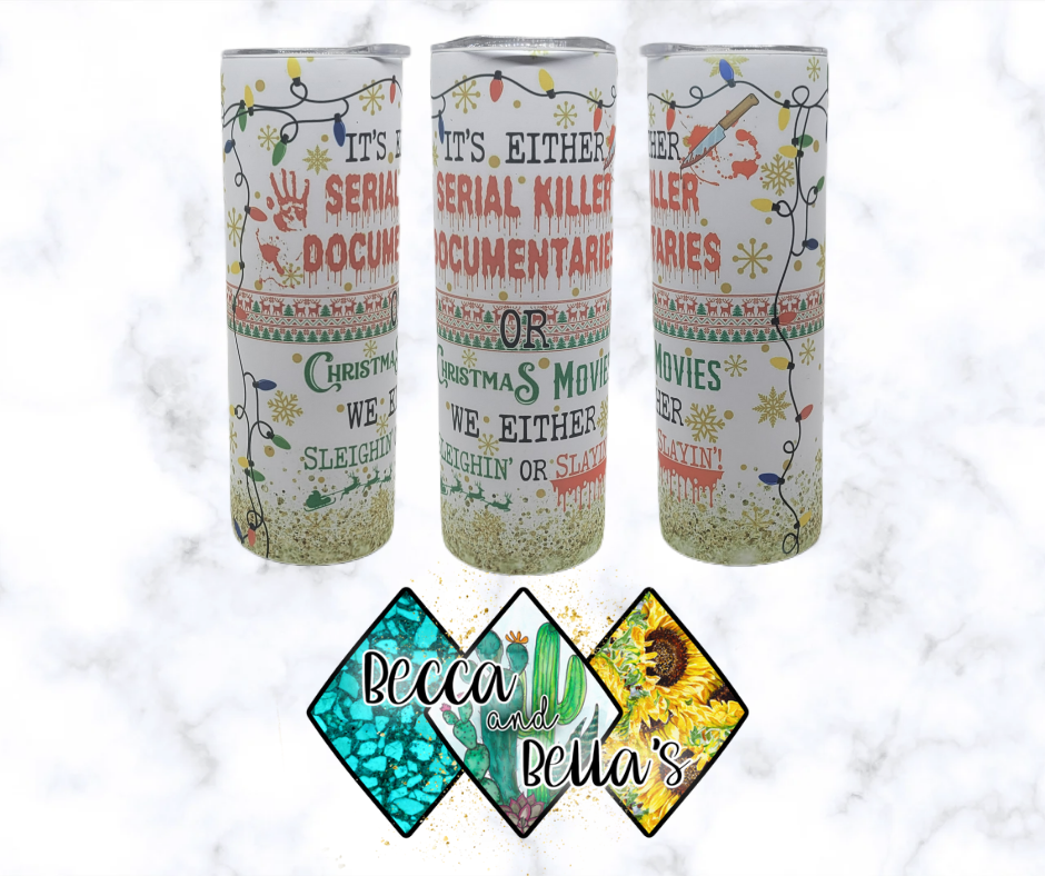 20oz Sleighin or Slaying Glow in the Dark Orange/Red Sublimated Tumbler
